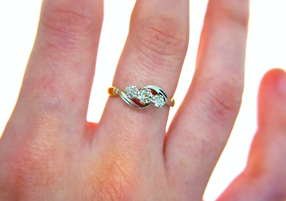 Vintage 1970s 18ct Gold 3-Stone Diamond Ring with White Gold Setting